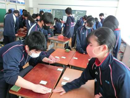 今日の授業1 12月20日(月) 公開日 2021/12/21 更新日 2021/12/21 校長室より 授業の様子です。I組は、一人一人課題の違った漢字の練習にしっかりと取り組んでいます。 国語の百人一首の授業楽しそうです。季節ですね。 いいね(0)