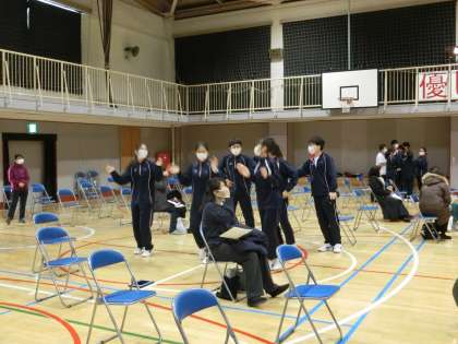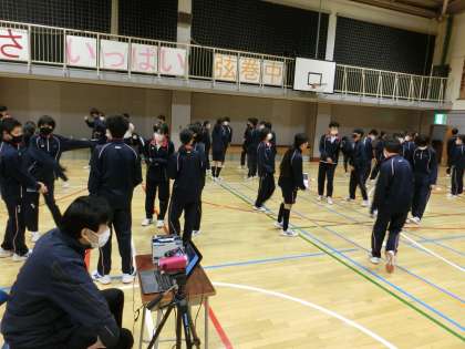 2年ダンス発表会1 12月21日(火) 公開日 2021/12/21 更新日 2021/12/21 校長室より 2年生のダンス発表会がはじまります。発表会前の練習時間の風景です。緊張が伝わってきます。 いいね(0)