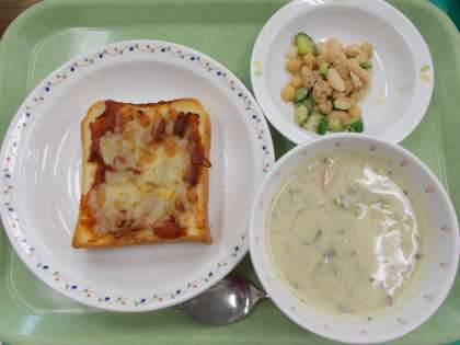 12月21日の給食 公開日 2021/12/21 更新日 2021/12/21 給食 豆乳ポテトスープは乳製品を使っていませんが、ベーコンやクリームコーンが入っているので食べやすいスープになっています。 今日の献立 ・ピザトースト ・豆乳ポテトスープ ・ビーンズサラダ 食材産地〔生鮮食品〕 にんにく:青森 玉ねぎ:北海道 ピーマン:茨城 じゃがいも:北海道 人参:千葉 かぶ:千葉 パセリ:宮崎 ベーコン:大多摩ハム いいね(0)