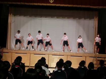 2年ダンス発表会7 12月21日(火) 公開日 2021/12/21 更新日 2021/12/21 校長室より 「素」「オレンジ」「ステーキ」の発表です。これですべての発表が終わりました。2年生は男女混合チームでしたが、どのチームも協力して素敵なダンスを創り上げていました。 いいね(0)