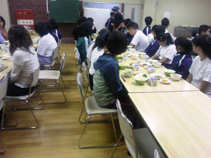 夕食の時間です。夕食後の学級紹介に備えてしっかり食べましょう。
