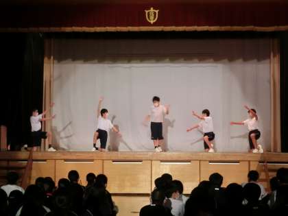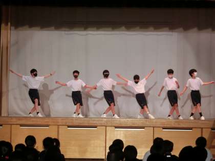 1年ダンス発表会9 12月21日(火) 公開日 2021/12/22 更新日 2021/12/22 校長室より D組「アグザイル」「平和な我らと書いてポリゴン教と読む」「father・mother」の発表です。 いいね(0)