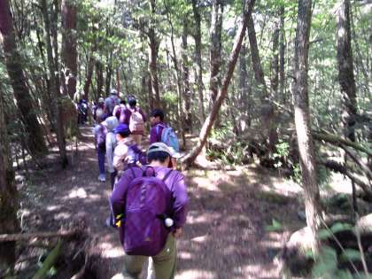 途中大きな穴があったり、にょきっと生えているキノコを見つけたり、楽しんで歩いています。