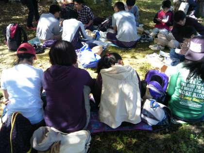 お昼の時間です。一生懸命歩き通したあとのお弁当はさぞおいしいことでしょう。