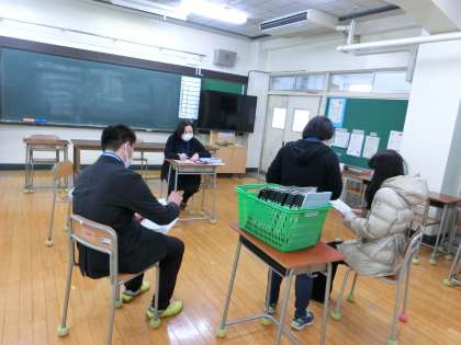 3学期学校公開1日目4〜道徳地区公開講座編10〜 1月15日(土) 公開日 2022/01/15 更新日 2022/01/15 校長室より 2年生とI組の意見交換会でした。 道徳の授業はどうでしたか。保護者の皆様には、最後までご参加いただき、貴重な意見もいただきありがとうございます。ぜひこれを機に。ご家庭でもお子様と道徳の授業についてもお話ししてみてください。 本日はありがとうございました。 いいね(0)
