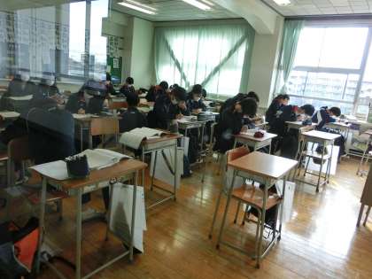 今日の弦巻中3 1月24日(月) 公開日 2022/01/24 更新日 2022/01/24 校長室より 3年生も受験についての説明中です。この土日で私立の推薦入試が終わりました。26日は、都立の推薦入試です。 いいね(0)