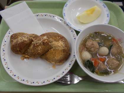 1月24日の給食 公開日 2022/01/25 更新日 2022/01/25 給食 揚げパンは弦巻中学校でも特に人気のメニューです! 揚げパンという料理は、乾燥してパサパサしがちなコッペパンをおいしく食べるために、学校給食の調理員さんが考案したものです。 24日の献立 ・きなこ揚げパン ・肉団子入り春雨スープ ・りんご 食材産地【生鮮食品】 人参:千葉 生姜:高知 長ねぎ:千葉 小松菜:茨城 りんご:青森 豚肉:青森 鶏肉:岩手 いいね(0)