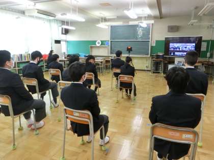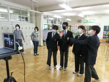 I組小中交流会〜オンライン開催〜1 1月25日(火) 公開日 2022/01/26 更新日 2022/01/26 校長室より 毎年、3校の特別支援小学校と弦巻中学校の小中交流会を開催しています。昨年度は、コロナの影響で、ビデオレターで学級紹介など行いました。今年度は、Zoomでオンラインで交流することになりました。 始まる前に、オンラインでつながった小学校と笑顔で手を振り合ったりしていました。 いよいよはじまります。 いいね(0)