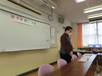 土曜カルチャー「絵てがみ教室」1 1月29日(土) 公開日 2022/01/31 更新日 2022/01/31 校長室より 講師を学校運営委員会の小林さんにお願いしてコロナになってしまい実現できず2年がたってしまいました。やっと、実施することができました。 いいね(0)