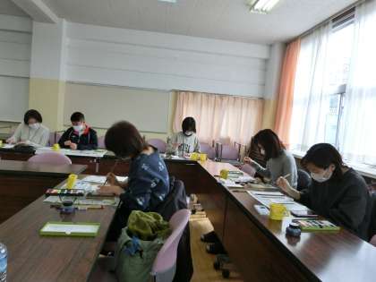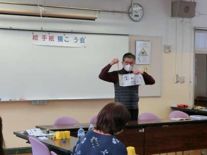 土曜カルチャー「絵てがみ教室」2 1月29日(土) 公開日 2022/01/31 更新日 2022/01/31 校長室より 講師の先生から、絵手紙の書き方についてレクチャーを受け、さあスタートです。 いいね(0)