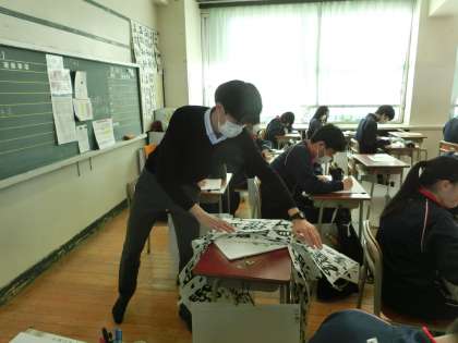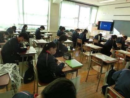 今日からオンライン授業を受ける生徒もいるので、教室ではいつもより少し人が少なくなっています。