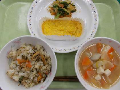 2月7日の給食 公開日 2022/02/07 更新日 2022/02/07 給食 千草焼きはみじん切りにした野菜とひき肉が入った卵焼きです。 今日の献立 ・磯おこわ ・千草焼き ・おかかあえ ・田舎汁 食材産地【生鮮食品】 人参:千葉 さやいんげん:沖縄 玉ねぎ:北海道 白菜:茨城 人参:千葉 大根:神奈川 里芋:埼玉 長ねぎ:埼玉 卵:青森 鶏肉:岩手 いいね(0)