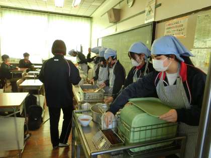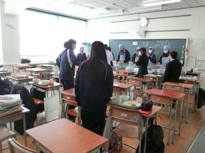 給食準備中。