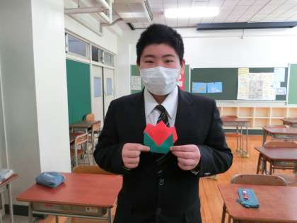 I組授業1 2月9日(水) 公開日 2022/02/10 更新日 2022/02/10 校長室より I組美術の講師の先生がお休みなので、折り紙づくりをしました。課題を作ってから、好きな折り紙づくりに取り組みました。 いいね(0)