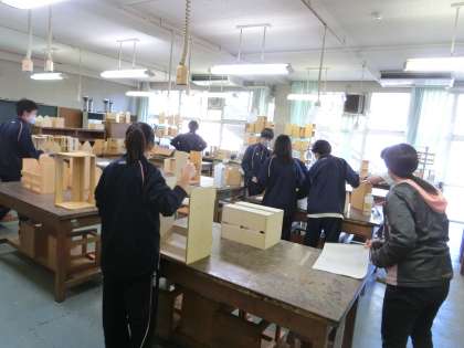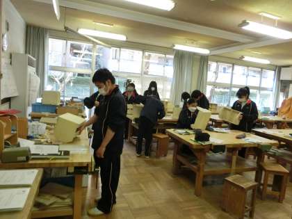 I組の隣の木工室・金工室では通常学級の技術の授業をしています。