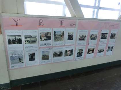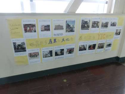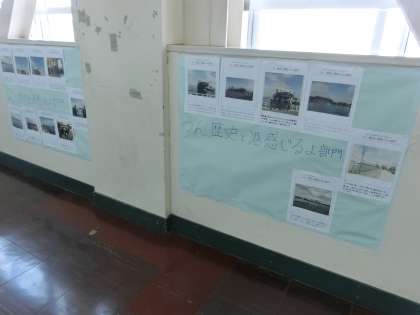 2年生の教室の前。校外学習の3つのテーマで写真が掲示されていました。写真コンテスト??