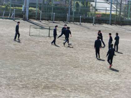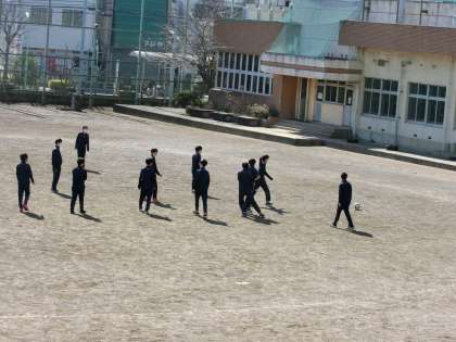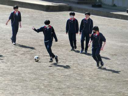 3年生体育。元気に登校してサッカーをやっています。