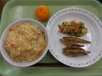 2月15日の給食 公開日 2022/02/16 更新日 2022/02/16 給食 2月15日の献立 ・きつね丼 ・きびなごのから揚げ ・野菜のゴマみそあえ ・ぽんかん 食材産地【生鮮食品】 玉ねぎ:北海道 人参:千葉 長ねぎ:千葉 生姜:高知 キャベツ:神奈川 小松菜:茨城 きびなご:鹿児島 卵:青森 鶏肉:岩手 ぽんかん:愛媛 いいね(0)