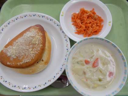 焼きピロシキはミルクパンにピロシキの具をつめ、上にパン粉をまぶして焼いたものです。