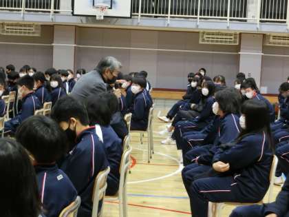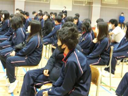 1年生いじめ防止プログラム3 2月28日(月) 公開日 2022/03/01 更新日 2022/03/01 校長室より はじめは、意見がなかなかでなかったのですが、それでも挙手で答えてくれた生徒もいました。いきなり校長先生が指名されてあわててしまいました。 いいね(0)