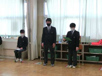 続いて3年生への感謝の言葉を、一人一人に1・2年生が発表しました。
