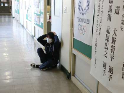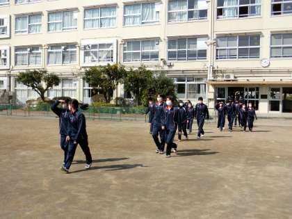 校舎内にいた生徒も、それぞれの場所で安全な姿勢をしていました。