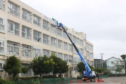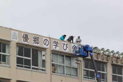 10月15日(土)、「優郷の学び舎」のプレートの取り付け工事が行われました。