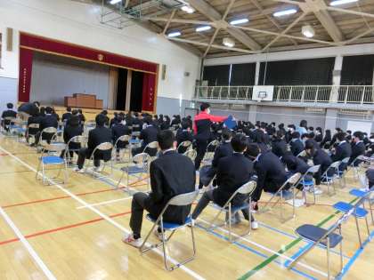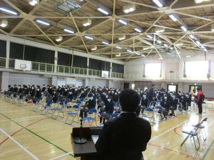 第1時間目は、卒業式練習です。背筋をきちんと伸ばして座っている後姿に3年間の成長を感じました。