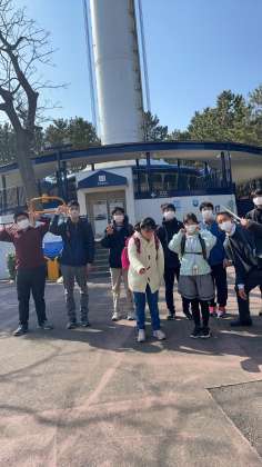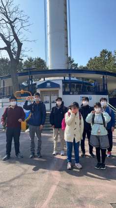 タワーのあと。みんなでハイポーズ。次はふれあいラグーンに行きました。