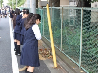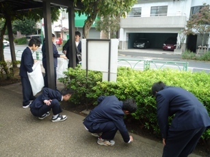 10月17日(月)、美化委員会主催による地域清掃が行われました。今回は2年生が移動教室間近のため、1・3年生を対象に実施しました。地域の方々も参加してくださり、生徒とともに学校周辺のゴミを拾ってくださいました。