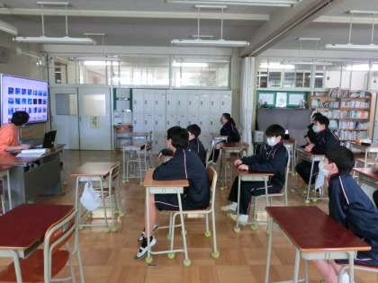 今日の授業8 3月14日(月) 公開日 2022/03/15 更新日 2022/03/15 校長室より I組3年生が卒業式練習で体育館にいる中、1・2年生は、教室で3年生の修学旅行の写真を見ています。 いいね(0)