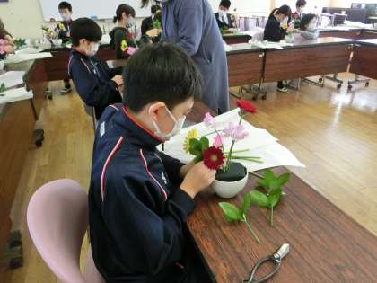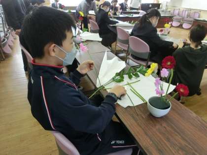 I組ではじめての華道体験です。とても楽しそうでした。