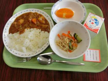 3年生は義務教育最後の給食です。もう一生給食がない人もいます。メニューはみんな大好きなカレーライスです。