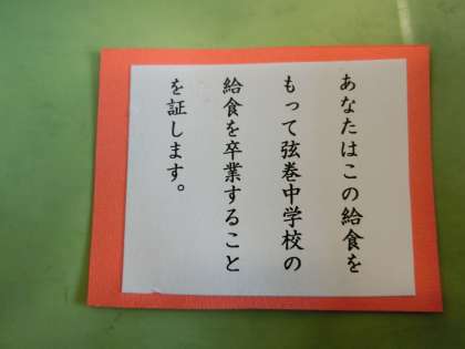 栄養士さんから、給食終了証書をもらいました。