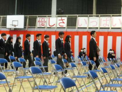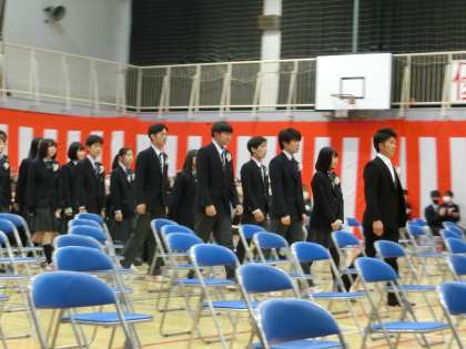 卒業生入場です。大きな拍手でお迎えください。