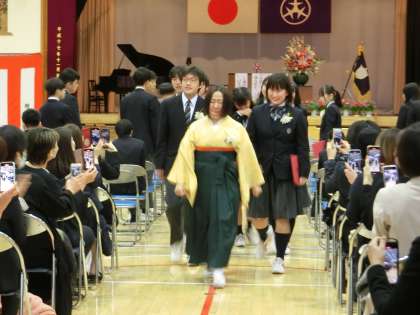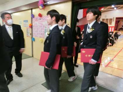 第66回卒業式26 3月18日(金) 公開日 2022/03/18 更新日 2022/03/18 校長室より 卒業生退場。山本先生も武内先生も涙ボロボロです。 卒業生のみなさん、おめでとう。教室で最後の学活。いよいよお別れです。 いいね(0)