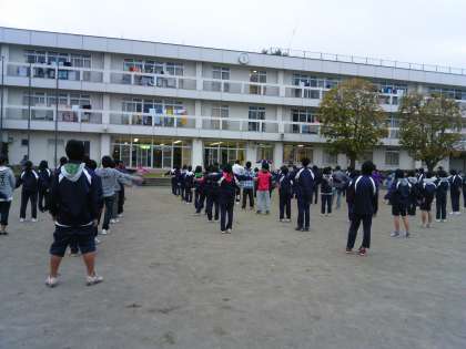 2日目の朝です。気温15度、くもりで寒いです。朝礼から今日の1日が始まります。