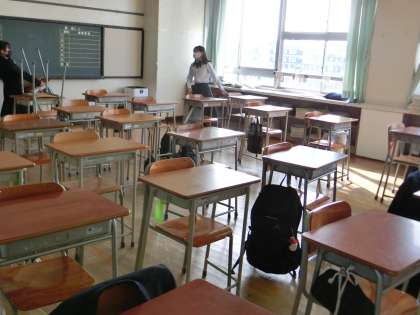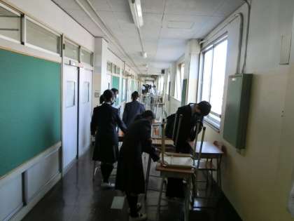 自分のだけではなく、みんなの分もと、せっせと机を運んでいます。