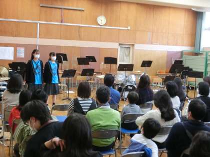 3年生の司会で、まずは、3年生の演奏です。1・2年生は観客席で!!