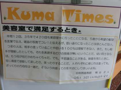 今日の弦巻中学校3 4月20日(水) 公開日 2022/04/20 更新日 2022/04/20 校長室より 放課後、校長室の前で、楽しく談笑していた3人組。ハイポーズ!! 1年生の学年主任からの「Kuma Time」今日も深いお話です。河口湖から、学校に向かっています。 放課後は、体育大会実行委員が行われました。 いいね(0)