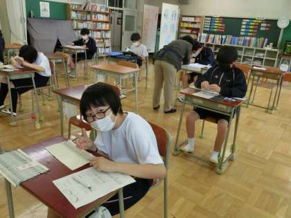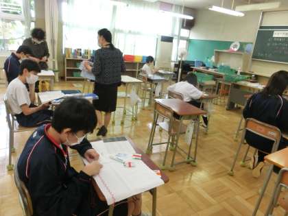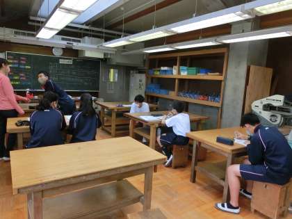 I組は、2つのグループに分かれて、美術と家庭科の授業に取り組んでいます。