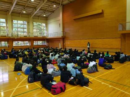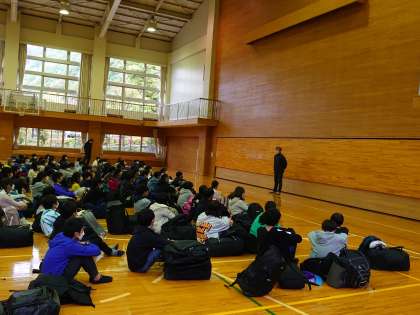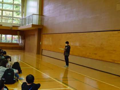 学園の小林さんにみんなでよろしくお願いしますの挨拶をしました。