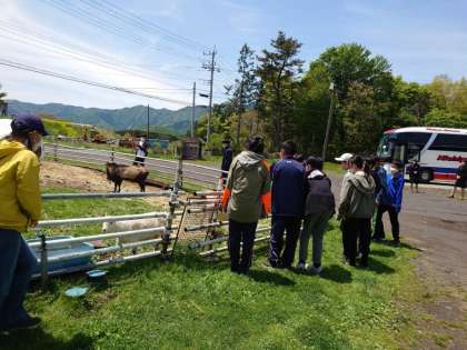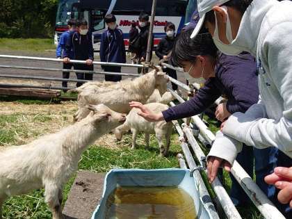 子やぎと戯れる子供たちです。