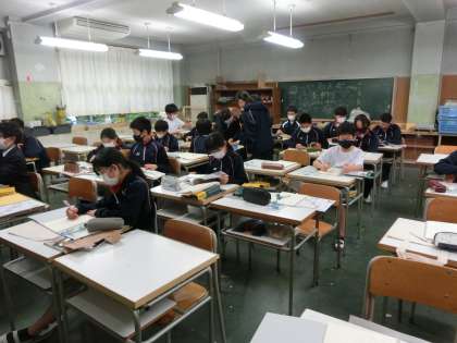 5月14日(土)の弦巻中5〜生徒編〜 公開日 2022/05/17 更新日 2022/05/17 校長室より 雨で体育は、体育館でした。3年生は体育大会の学年種目「大縄跳び」の練習です。 また美術室では、自分のオリジナルの美術バック製作中。 いいね(0)