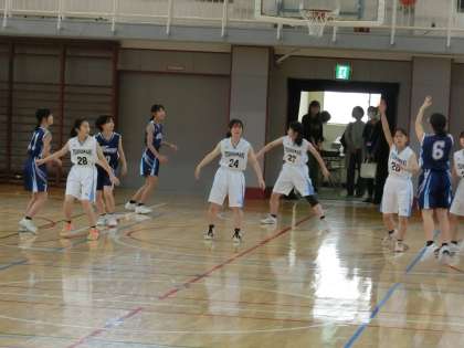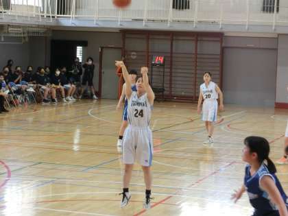 女子バスケットボール部試合中。観戦も保護者1名までと、たくさんの保護者の方が応援にきてくださいました。