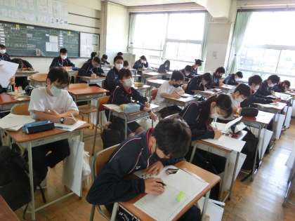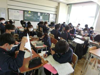 弦中生活1 5月18日(水) 公開日 2022/05/18 更新日 2022/05/18 校長室より 放送で全校朝礼を行いました。まず月曜日から3週間弦巻中で教育実習を行う先生からあいさつをしていただきました。 そのあと、沖縄復帰50年のお話を校長先生からしました。 1時間目の授業1年生は河口湖移動教室の新聞づくりをやっていました。 いいね(0)