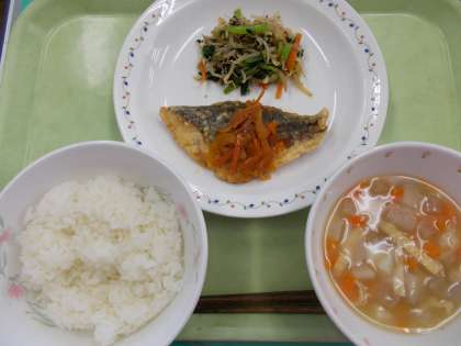 今週は3年生が長崎方面への修学旅行に行きます。それにちなんで、アジの南蛮漬けと熊本風のっぺ汁を提供しました。