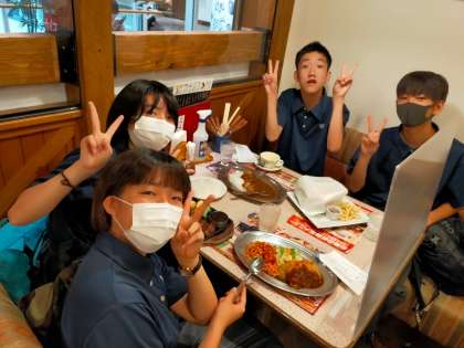 お昼ご飯中。楽しい一時。何を食べたのかな?