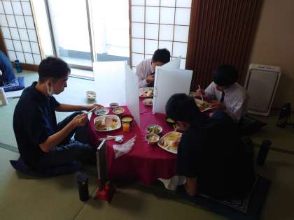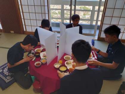 黙食で、食べる音しか聞こえません。