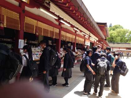 合格祈願をしたり、おみくじをしたり、お守りを買ったり、ちゃんと班で行動してます。